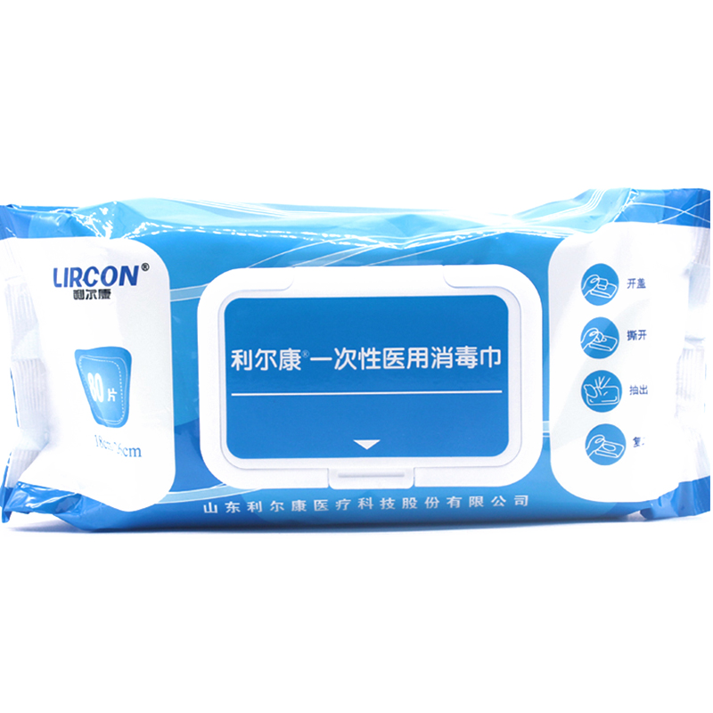 利尔康 卫生湿巾80片一次性消毒湿巾医用杀菌消毒大包装医用湿巾