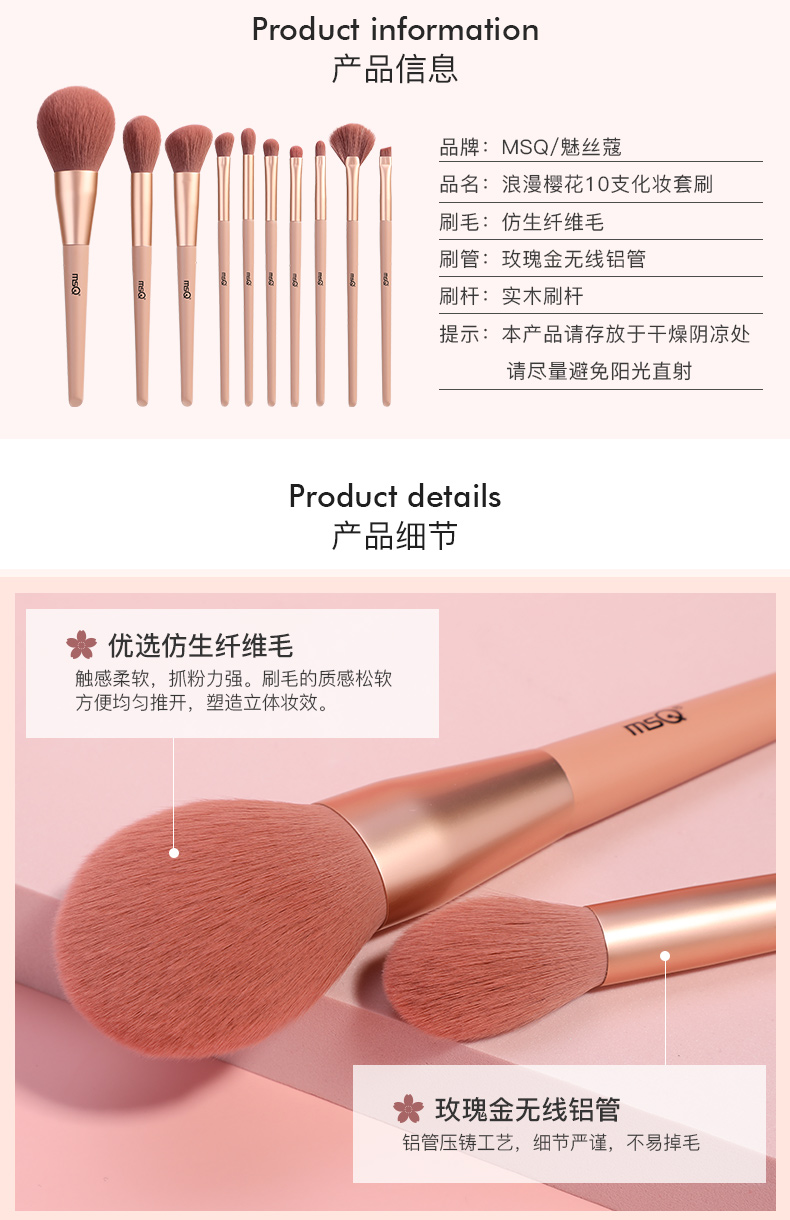 MSQ/魅丝蔻10支樱花化妆刷套装初学全套刷子腮红散粉刷眼影刷眉刷