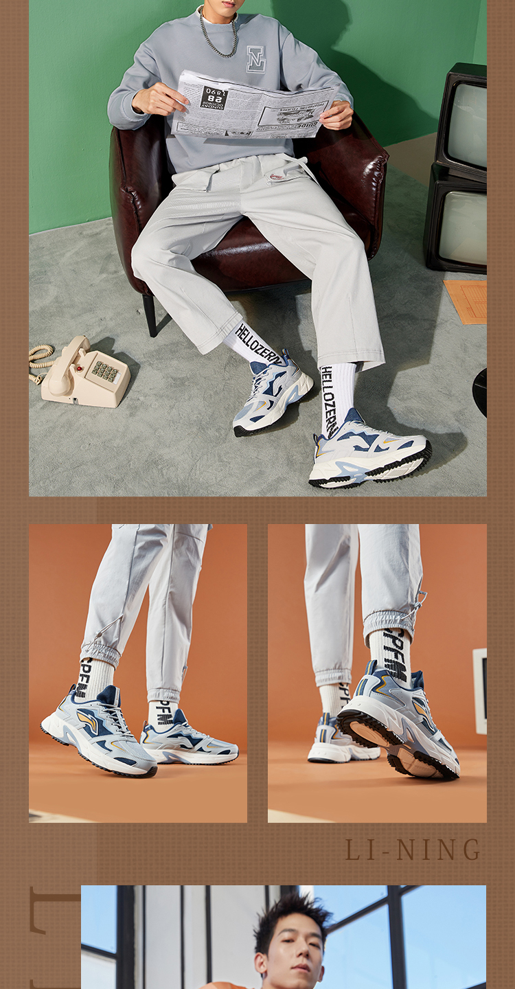 李宁跑步鞋男春秋透气男鞋新款网面鞋子国潮运动鞋男士复古老爹鞋